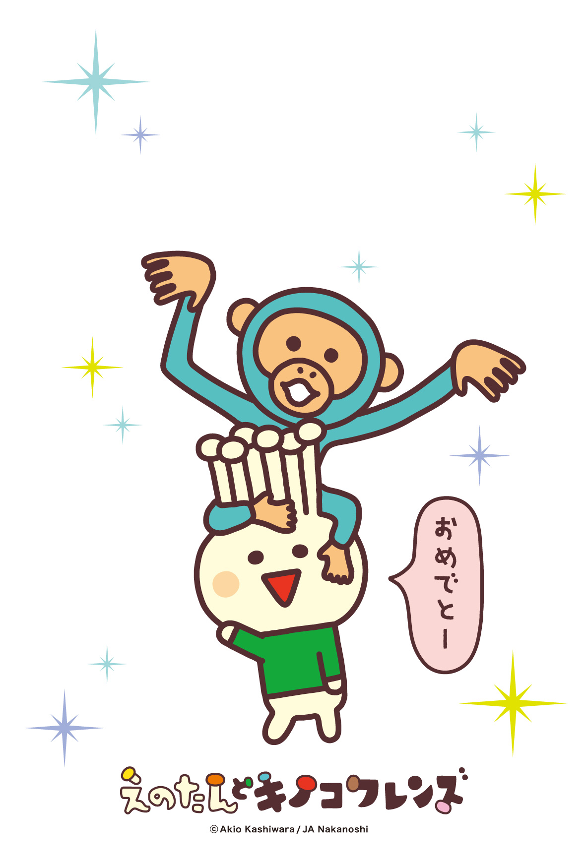 げんきでハッピーなおさるさんと一緒でえのたんも楽しそう。2016年用の「えのたん」たちの年賀状ができました〜