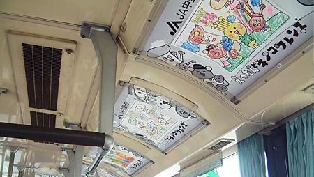 車内には子供達が描いてくれた、えのたん達の塗り絵もあるんだよ〜。