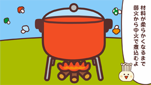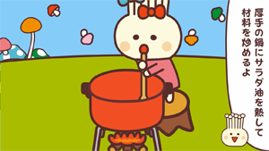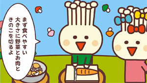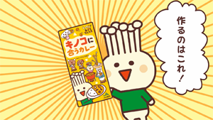 えのたんとのっきーがカレー作りをしているよ。どんなカレーができるのかな〜