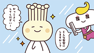 えのたんは床屋さんじゃなくて、美容室に通っているんだ~。