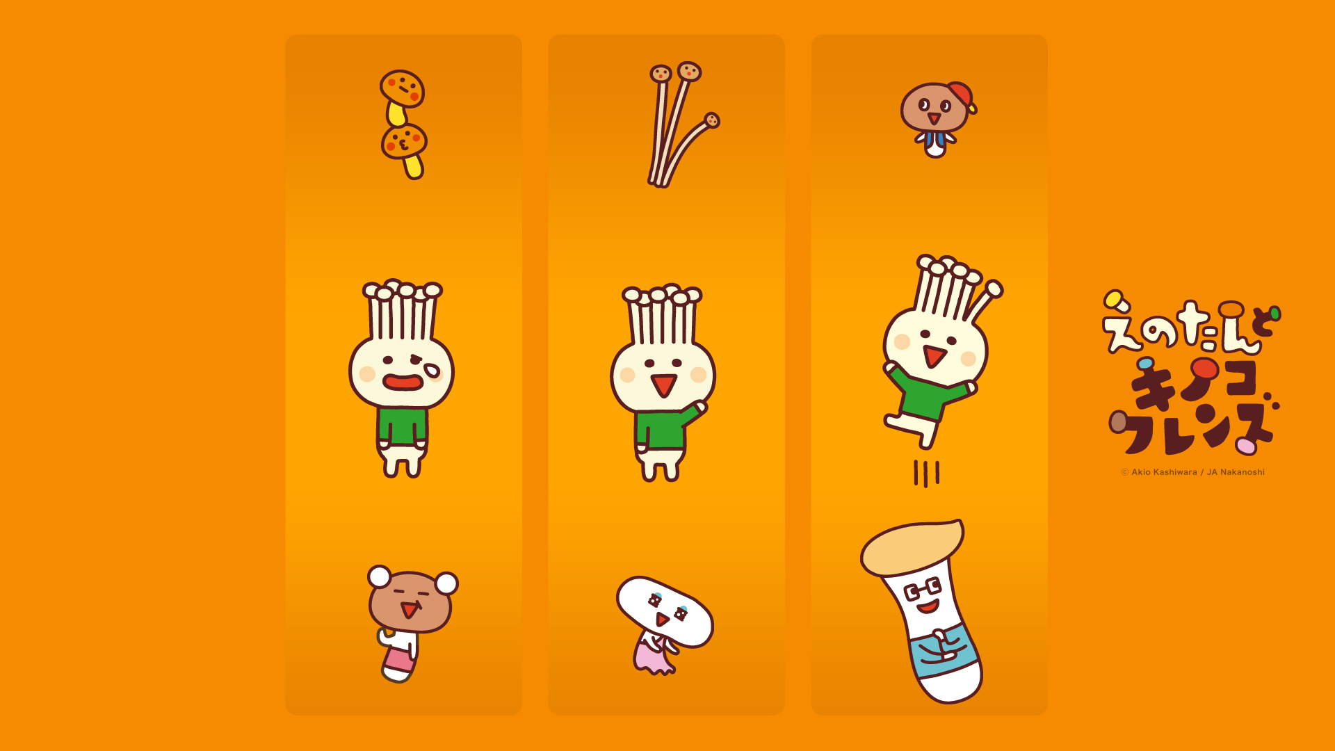 秋です。いよいよ、僕たちの季節がやってきました〜。おいしいキノコをたくさん食べて元気になってくださいね〜。